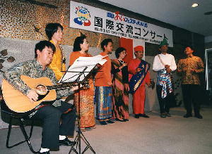 また,インドネシアの歌を3年間勉強していたので,アイフェスティバル(岡山市国際課主催の国際交流イベント)では数人のインドネシア人と共にミニコンサートをしました。岡山大学留学生会館でインドネシア独立記念日のパーティでも歌う機会がありました。国際交流センターでは何度もイベントに呼ばれ,ギター片手に歌いました。(昨年はその場におられた在日インドネシア総領事に喜んでいただき,神戸の総領事公邸でのパーティに招待されました。)