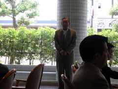 | 濱口隆生先生は,香港日本人学校から帰国 されました。サーズが猛威をふるい,家族は同 行できませんでした。機内はガラガラで,香港 に着くとみんなマスクをしており,咳をしたら逃 げていくような状態だったそうです。学校は1ヶ 月遅れでやっと始まりはしたものの,朝検温で 全員の健康チェックをし,みんなマスクをはめて いたので,子どもの顔も覚えられないというこ とだったそうです。今はその病気はどこへ行っ たのか不思議ですね。 |