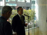 | 富部昌仁先生は,岡山市桑田中学校から, ブラッセル日本人学校に派遣されます。ソフ トテニスの顧問で岡山国体を無事終え,か ねてからの希望をここで叶えることができた ということです。県教委や文部科学省の試 験よりも緊張したのが,奥様にお話する時だ ったそうです。また,奥様からは,御野小学 校の時は,小坂田先生からジャカルタの話 を,岡北中学校の時は三宅先生からドイツ の話をみんなで楽しく聞いていた思い出が 紹介されました。 |