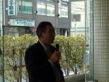 村尾剛介先生は,岡山市立芥子山小学 校からバンコク日本人学校に派遣されま す。いつも仕事が遅いのですが,今は派 遣に向けて急ピッチで仕事をしているた め,周りから驚かれているそうです。帰 国後は,海外の経験をたくさんの人に伝 えていきたいと,決意を述べられました。 |